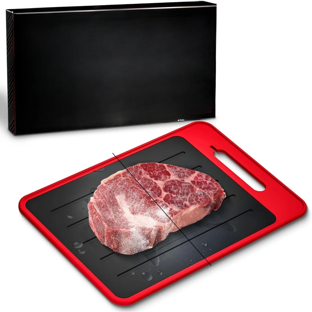 Upgrade your kitchen efficiency with this all-in-one defrosting tray, designed to simplify food prep while saving space. This multifunctional tool combines four essential kitchen features in one compact and convenient design.