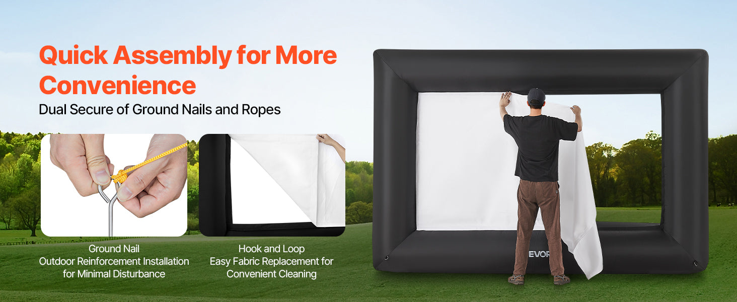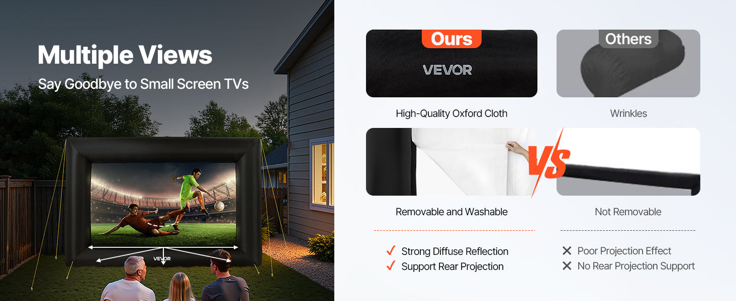 Transform your backyard into an outdoor theater with the VEVOR Inflatable Projector Screen. Available in multiple sizes from 14 to 20 feet, this large-format screen offers an immersive viewing experience for movie nights, parties, or special events. Made from durable, weather-resistant materials, it inflates quickly with the included 120W air blower and is easy to set up, take down, and store. Perfect for outdoor gatherings, this screen delivers big-screen entertainment wherever you go.